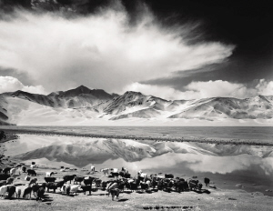 一臺古老而又沉重的相機,和由它帶來的幾分笨拙而又充滿儀式感的觀看世界的方式,正好對應(yīng)了馮建國在中國西部尋夢的心境。如今,馮建國常教導(dǎo)學(xué)生,“你所向往的東西就純粹地去做”?;蛟S是帕米爾高原千年冰山的呼喚,或許是塔克拉瑪干沙漠遠古駝鈴的回響,還有青藏高原朝圣的腳步、誦經(jīng)的吟唱……印證了他對西部的無盡向往和與大畫幅黑白攝影的不解之緣。