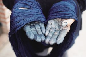 藍(lán)色的手是以藍(lán)染為生的人重要的標(biāo)志之一。