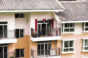 搬進(jìn)城中安置房后,在陽(yáng)臺(tái)上依然制衣的婦女。