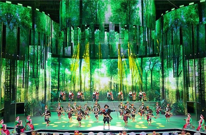 在舞美上,晚會傾力打造中華文化概念,突出鑄牢中華民族共同體意識,建構(gòu)熱烈祥和的觀演環(huán)境、身臨其境的現(xiàn)場體驗、自然流暢的互動場景,以更炫麗、更時尚、更具生命力的節(jié)目內(nèi)容和形式,為觀眾提供技術(shù)與藝術(shù)完美結(jié)合的視聽盛宴。主創(chuàng)人員別具匠心地把舞臺設計成一個具有民族特色的大客廳,寓意各族兄弟姐妹溫暖團聚,營造既有民族特色又有時代氣息的視覺空間。