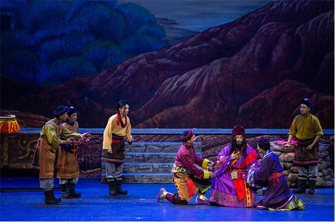 這臺表現(xiàn)藏漢民族團(tuán)結(jié)歷史題材藏戲新作,契合了大時代的脈搏,呼應(yīng)了實(shí)現(xiàn)中華民族偉大復(fù)興“中國夢”的心聲,確實(shí)是一部歷史與現(xiàn)實(shí)融匯貫通、人文精神與核心價值理念交相輝映的藝術(shù)精品。