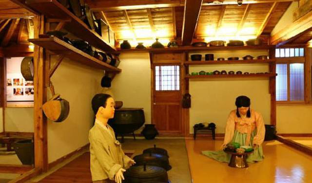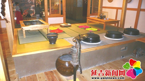 無(wú)論什么類型的朝鮮族傳統(tǒng)民居,只要走進(jìn)房屋,第一個(gè)感覺(jué)就是有很大的一個(gè)炕。炕是朝鮮族人在室內(nèi)的主要活動(dòng)空間,你看有的炕上親友們?cè)趪缹?duì)飲,有的炕上婦女們?cè)谧龌钣?jì),還有的炕上孩子們?cè)谕嫠???淮?,散熱面積就大,屋里到了冬天就會(huì)顯得特別暖和。在延邊地區(qū)朝鮮族房屋內(nèi)的灶坑更是別具一格,它下陷在地下,底部低于地面,上部還有蓋板,而蓋板和鍋臺(tái)、炕面形成了一個(gè)平面。據(jù)說(shuō),這種灶坑是既好燒、又衛(wèi)生。