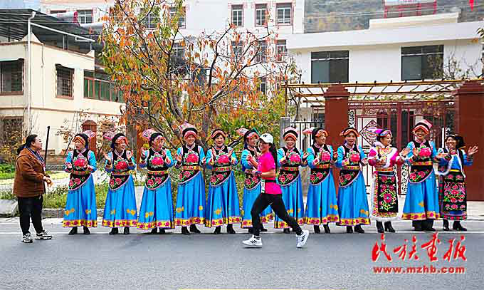 運動員們在奔跑中感受熱熱鬧鬧的羌歷年,體驗節(jié)奏明快的沙朗舞,近距離接觸古樸厚重的羌族文化。