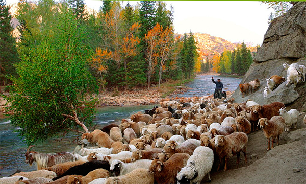 我國的主要牧業(yè)區(qū)在內(nèi)蒙古自治區(qū)、新疆維吾爾自治區(qū)、西藏自治區(qū)和青海省、四川省與云南省。從事畜牧業(yè)經(jīng)濟的主要有蒙古族、藏族、哈薩克族、柯爾克孜族、塔吉克族、裕固族,養(yǎng)殖牛羊較多的還有回族、維吾爾族、彝族、羌族、納西族等民族。畜牧業(yè)生產(chǎn)為廣大群眾提供了豐富的肉制品和乳制品。新疆蒙古族牧民晾曬羊肉干被稱為蒙古羊系之冠的“烏珠穆沁肥尾羊”,成年公羊重達100多公斤,光尾巴就有10公斤重,肉美味鮮,肥而不膩,鮮而不膻,北京“東來順”的涮羊肉采用的就是這種羊肉,受到中外賓客普遍稱贊。內(nèi)蒙古自治區(qū)養(yǎng)殖的三河羊和草原紅牛也是肉乳兼用的優(yōu)良品種。
