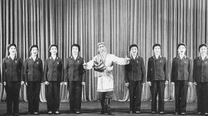 在簡陋的營房里演出完,克里木發(fā)現(xiàn)還有兩個戰(zhàn)士在哨樓上值班,就帶兩個演員上哨樓演出。他們還帶了一束路上采的野花,準備獻給為國戍邊的可愛的人。