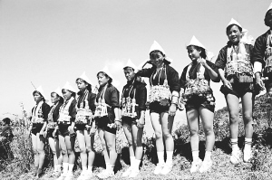 奕車人是哈尼族支系中最原始的一支,主要居住在云南省紅河哈尼族彝族自治州南部紅河縣的大羊街鄉(xiāng)等3個鄉(xiāng)。奕車人有句俗話:“梯田是小伙子的臉,大腿是姑娘的美?!鞭溶嚬媚锿ǔ4┮环N做工精細、式樣獨特美觀的緊身超短褲,為的就是充分顯示大腿的美。在一年一度的“仰阿娜節(jié)”上,她們裸露著修長的雙腿,穿著木屐跳起“哈尼踢踏舞”,那美好的場景真是讓人過目難忘。