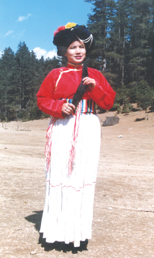 寧蒗地區(qū)的普米婦女多穿束腰、多褶的百褶裙,常用白藍(lán)等色的棉麻布制成,裙長幾乎拖至腳面。活動時(shí),她們將裙子從左面提起,掖在腰間?! ?/p>