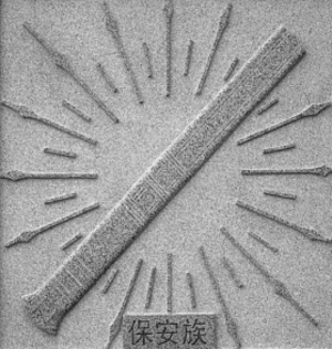 保安族擅長打刀技術(shù),所產(chǎn)刀具構(gòu)造精巧、質(zhì)量上乘,工藝獨(dú)成一體,被稱為“保安腰刀”。保安人打制腰刀具有800多年的歷史,公元13世紀(jì)成吉思汗東征時(shí),把部分來自中亞的官兵和工匠留在青海同仁地區(qū)。這部分色目人與當(dāng)?shù)孛晒?、漢、回、藏、土等民族相鄰而居,相互交流融合,逐步形成了今天的保安民族。保安族發(fā)揮擅長冶鐵技術(shù)的特長,所生產(chǎn)的腰刀不僅自用,還成為與蒙古、藏、回等民族交換牛羊和日用品的商品,因此逐漸聞名于世。