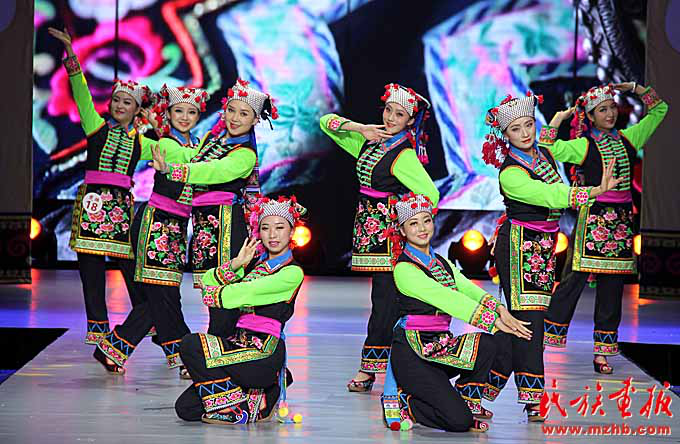 2017年火把節(jié)上楚雄民族服飾賽裝節(jié)目展演。賽裝節(jié)已經(jīng)不局限于大山深處,而是走上了更廣闊的舞臺(tái)(楚雄州民宗委 供圖)