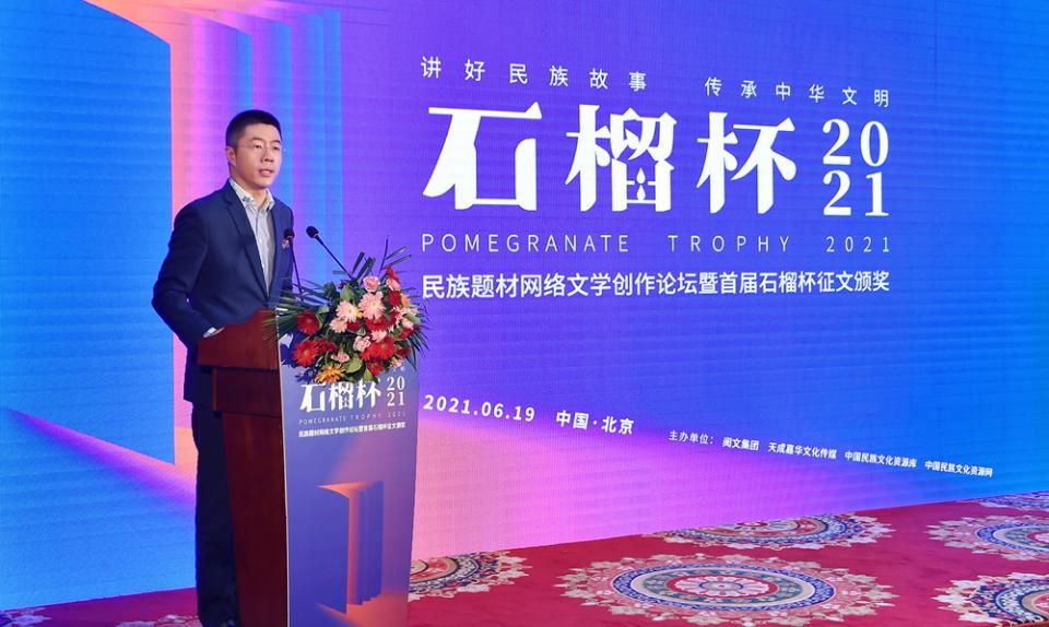 6月19日,民族題材網(wǎng)絡(luò)文學(xué)創(chuàng)作論壇暨首屆石榴杯征文大賽頒獎典禮在京舉行。作為國家民委主辦的“中華民族全家?!毕盗谢顒又?,首屆石榴杯征文大賽得到了國家民委文化宣傳司和中國少數(shù)民族文化藝術(shù)促進會的指導(dǎo)與支持,由閱文集團聯(lián)合天成嘉華文化傳媒、中國民族文化資源庫、中國民族文化資源網(wǎng)共同舉辦。本屆大賽以“講好民族故事 ,傳承中華文明”為主題,涌現(xiàn)出眾多弘揚民族精神、表達文化自信、傳播正能量的作品。經(jīng)過專家推薦及嚴格評審,《草原有座蒙古包》、《走西口之天山行》、《彩云微光》等三部作品獲“最具民族風(fēng)采獎”,《神藏》、《歡想世界》、《爛柯棋緣》、《時光和你都很美》、《恰似寒光遇驕陽》、《黎明醫(yī)生》、《暖君》、《驚雷》、《大訟師》、《消防英雄》等十部作品獲“優(yōu)秀作品獎”。所有獲獎作品都將收錄入中國民族文化資源庫。中國作家協(xié)會副主席、書記處書記吉狄馬加表示,本屆石榴杯大賽是在黨和國家長期以來堅持的對民族文化、少數(shù)民族作家創(chuàng)作和民族題材創(chuàng)作的大力扶持下,依托網(wǎng)絡(luò)文學(xué)平臺,將文學(xué)作品與影視作品改編、游戲、動漫產(chǎn)品制作結(jié)合起來,探索的一條發(fā)展民族文化的新路,具有開創(chuàng)意義。