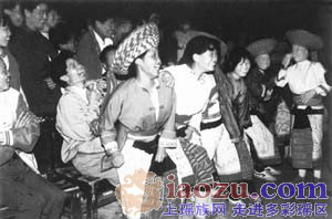 隨著陣陣高漲的歡笑、叫喊,人們?cè)陝?dòng)了。坐在男人們腿上的姑娘,一個(gè)個(gè)彈而跳起,又重重地落下來,坐到男人們的腿上。如此蹾下又跳起,跳起又蹾下,在一片歡叫聲中反復(fù)地循環(huán)。