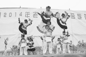 圖為當(dāng)?shù)孛缱迦罕娬谡寡輫?guó)家級(jí)非遺“滾山珠”。