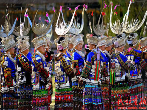 過苗年的時(shí)候,貴州苗族未婚少女穿戴起了體現(xiàn)家庭財(cái)富的銀飾