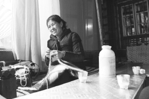 “一壺甜茶一下午。”勤勞的藏族婦女,手里的鉤針穿梭在毛線之間,一下午就織好了一個(gè)馬鞍坐片。