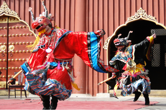 內(nèi)蒙地區(qū)的查瑪樂舞已與藏族地區(qū)的“羌姆”明顯不同。隨著藏傳佛教傳入蒙古地區(qū)后,積極的吸收和融合了蒙古族傳統(tǒng)音樂舞蹈和薩滿教神舞的因素后形成了蒙古化的查瑪樂舞。因此,內(nèi)蒙地區(qū)的查瑪內(nèi)具有復合型和多元性特點。2008年,查瑪樂舞被列入國家級非物質(zhì)文化遺產(chǎn)。