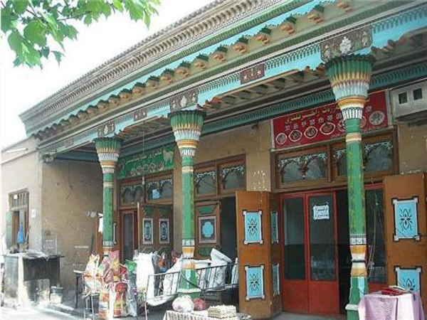 多用虛實(shí)對比,重點(diǎn)點(diǎn)綴的手法,喜歡采用磨磚拼花、石膏花、彩畫、磚雕、木刻等裝飾,裝飾圖案以及窗欞花飾,多為花草或幾何圖形;門窗口多為拱形;色彩則以白色和綠色為主調(diào),表現(xiàn)出伊斯蘭教的特有風(fēng)格。