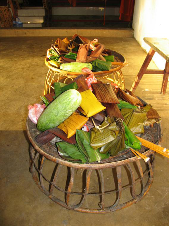 外出勞動(dòng)者常在野外用餐,用芭蕉葉或飯盒盛一團(tuán)糯米飯,隨帶鹽巴、辣子、酸肉、燒雞、喃咪(傣語,意為醬)、青苔松相伴進(jìn)食。