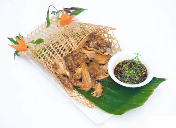 傣族傳統(tǒng)家常風(fēng)味菜,特點(diǎn)是軟嫩鮮甜,原汁原味。制法是將鮮魚去鰓和內(nèi)臟,洗凈,將蔥花、姜末、蒜末、青椒末、青姜葉末、芫荽末、野花椒葉末、薄荷、茴香葉末、香茅草葉末、草果粉、味精、鹽、料酒拌制成餡,裝入魚腹,頭尾折攏,再用香茅草捆成十字,外面包以芭蕉葉,埋入木柴燒后的炭或熱灰中燒熟,取出去掉芭蕉葉和香茅草,裝盤即成。