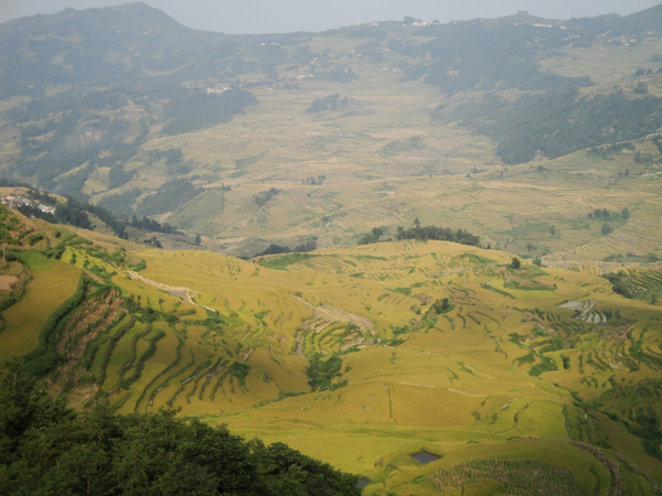 元陽哈尼族開墾的梯田隨山勢(shì)地形變化,因地制宜,坡緩地大則開墾大田,坡陡地小則開墾小田,甚至溝邊坎下石隙也開田,因而梯田大者有數(shù)畝、小者僅有簸箕大,往往一坡就有成千上萬畝。元陽梯田規(guī)模宏大,氣勢(shì)磅礴,綿延整個(gè)紅河南岸的紅河、元陽、綠春及金平等縣,僅元陽縣境內(nèi)就有17萬畝梯田,是紅河哈尼梯田的核心區(qū)。元陽縣境內(nèi)全是崇山峻嶺,所有的梯田都修筑在山坡上,梯田坡度在15度至75度之間。以一座山坡而論,梯田最高級(jí)數(shù)達(dá)3000級(jí),這在中外梯田景觀中是罕見的。元陽哈尼梯田主要有3大景區(qū):壩達(dá)景區(qū)包括箐口、全福莊、麻栗寨、主魯?shù)冗B片14000多畝的梯田;老虎嘴景區(qū)包括勐品、硐浦、阿勐控、保山寨等近6000畝梯田;多依樹景區(qū)包括多依樹、愛春、大瓦遮等連片上萬畝梯田。如此眾多的梯田,在茫茫森林的掩映中,在漫漫云海的覆蓋下,構(gòu)成了神奇壯麗的景觀。這些景區(qū)就是目前準(zhǔn)備申報(bào)世界遺產(chǎn)的核心保護(hù)區(qū)。