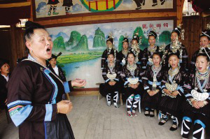 2012年6月6日,中國非物質(zhì)文化遺產(chǎn)保護(hù)中心在北京向全國60位傳承人頒發(fā)了“中華非物質(zhì)文化遺產(chǎn)傳承人薪傳獎(jiǎng)”,吳品仙是貴州唯一獲得此獎(jiǎng)項(xiàng)的侗族大歌傳承人。談到侗歌時(shí)她如數(shù)家珍,翻開幾大摞侗族大歌的資料說:“我用30年時(shí)間整理的1700多首侗族大歌,覆蓋了黎平縣的91個(gè)侗族寨子的。因?yàn)槎弊鍥]有文字,我用同音的漢語記錄了侗語歌詞,把每首侗歌的發(fā)音用簡譜譜了曲,便于后人傳承研究?!?/p>