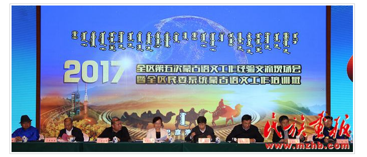 2017年11月28至29日,內(nèi)蒙古自治區(qū)第五次蒙古語文工作經(jīng)驗(yàn)交流現(xiàn)場(chǎng)會(huì)暨全區(qū)民委系統(tǒng)蒙古語文工作培訓(xùn)班在阿拉善盟召開。會(huì)議上,內(nèi)蒙古自治區(qū)民委主任奇錦玉就內(nèi)蒙古自治區(qū)蒙古語文工作的新局面提出了幾點(diǎn)要求。