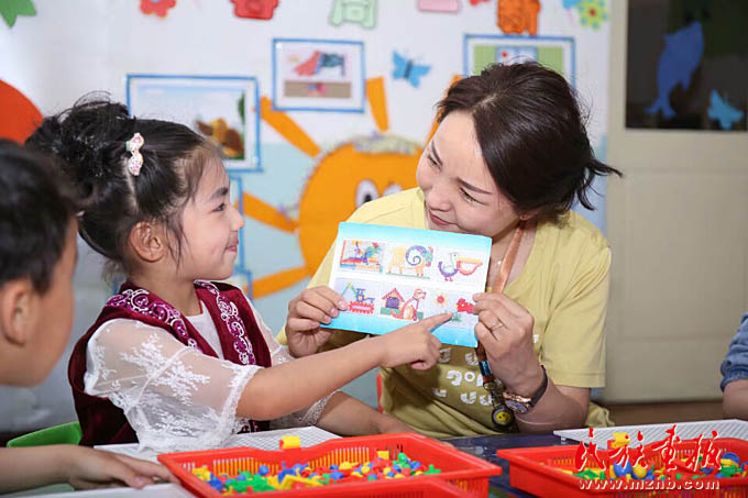 情系幼教心無悔。如今的阿合奇第三幼兒園是一個充滿團結(jié)與奉獻精神的集體,在這片天地里,古麗孜娜提·吐坎辛勤耕耘,用愛心、誠心、責任心去換取孩子的開心、家長的放心。古麗孜娜提說,“我對幼教事業(yè)充滿敬畏,看著幼兒園孩子們健康、快樂、幸福,我就覺得特別幸福。”