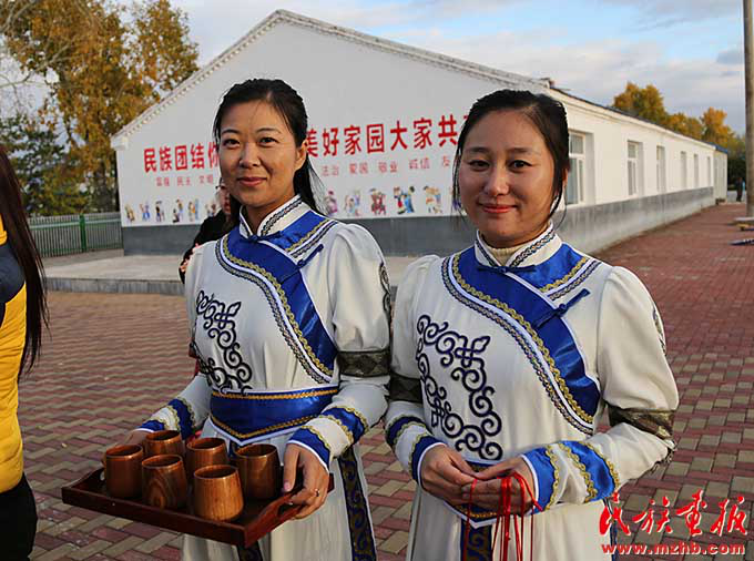 熱情的達(dá)斡爾人以奶茶款待賓朋