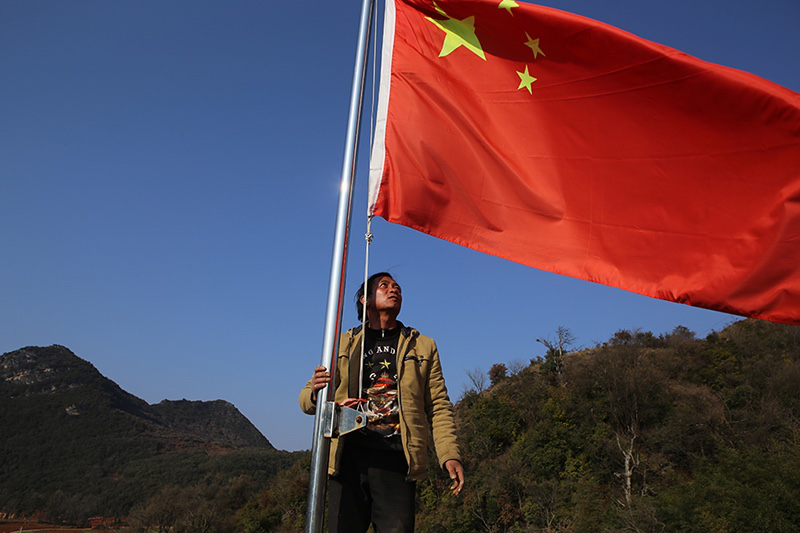 2月初的丘北,連日陰雨,是一年中最冷的時節(jié)。我先于拍攝團隊幾天到了村里,想獨自在這里轉(zhuǎn)轉(zhuǎn),熟悉一下村民,篩選一下拍攝的人物。正當我在一個泥濘的岔路口徘徊,尋思著是否要問路去村主任家的時候,旁邊屋子里走出一個人,面容親善:“天好冷啊,進來烤烤火吧!”他打招呼的方式如同熟人,一笑時露出兩排又白又整齊的牙齒。于是,他家擁擠的火塘邊又多了一個人。大家圍著火爐有一搭沒一搭地聊天,語調(diào)溫和小聲,沒話的時候大家也不覺得別扭,只聽見玉米骨在火塘里噼啪作響。這是一個五代同堂的大家庭,招呼我的主人楊樹紅和妻子以及祖母、父母一起生活,兒子和女兒在廣東打工,已經(jīng)回村準備過節(jié),兒子未婚,女兒則有了兩歲的孩子。楊樹紅的祖母出生于1922年,是這個村子里最老的老人,耳朵有些背。我大聲問她是否還記得年輕時候踩花山,她拍著我的手背說:“17歲我就去踩花山嘎!好玩嘎!”兒媳笑著解釋說:“估計她說的是17歲踩花山的時候碰到爺爺,被他拖媳婦拖走的事呢?!弊婺改昙o太大,看著她手上和臉上深深的褶皺,不知藏了多少往事。