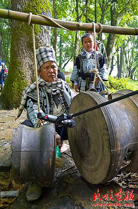 銅鼓是彝族倮家人心靈的號(hào)角,有銅鼓的地方就有倮家人。伴隨著古老的銅鼓聲,倮人開(kāi)始慶祝“蕎菜節(jié)”