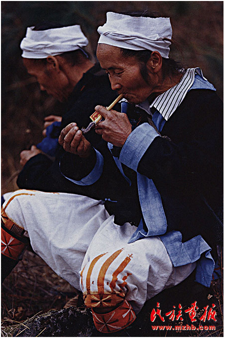 有人說(shuō),白褲瑤婦女的一生都在為做衣服而忙碌,這話一點(diǎn)不假。盡管現(xiàn)在我國(guó)服裝的樣式豐富多彩,面料五花八門(mén),但是白褲瑤仍舊保持自己本民族的著裝習(xí)慣。婦女們每年自己種棉花、自己紡線、自己織布、自己印染、自己繡花、自己縫制衣服。