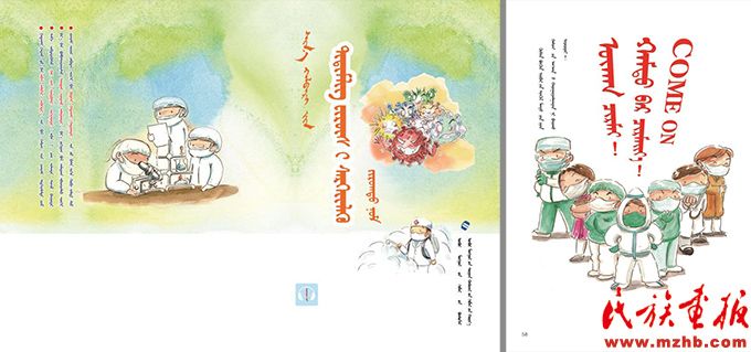 內蒙古教育出版社出版的《新型冠狀病毒預防繪本》(蒙古文版)。
