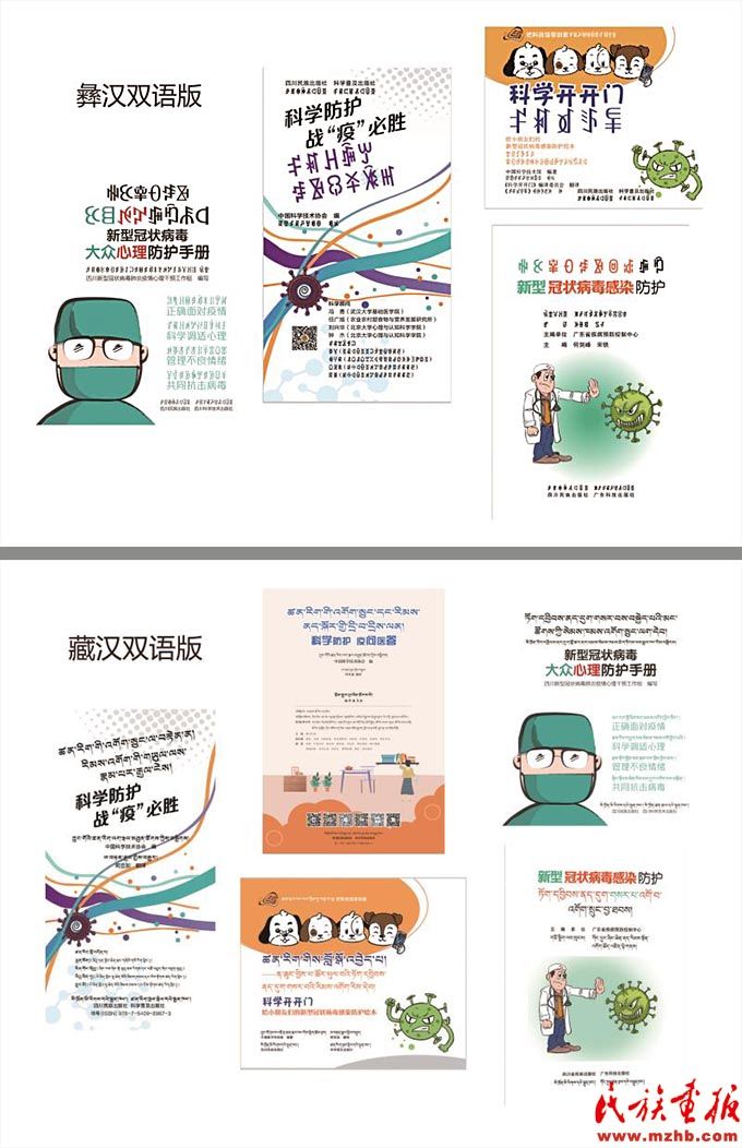 四川民族出版社出版的《新型冠狀病毒感染防護》(藏漢雙語、彝漢雙語)紙質圖書。
