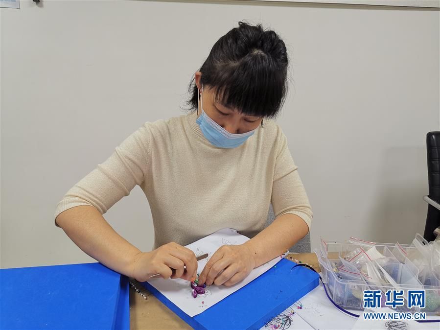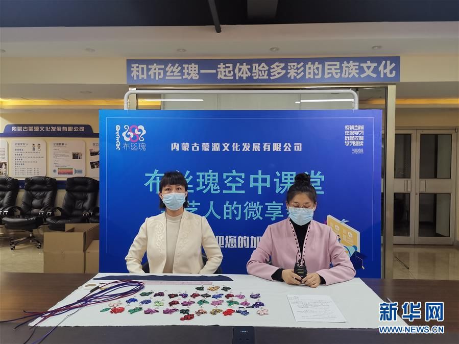 工藝師孫亞杰(左)通過(guò)空中課堂為內(nèi)蒙古各地的近500名婦女講授盤扣制作工藝。