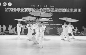 2020年北京市社會體育指導(dǎo)員民族體育項目交流展示賽日前在北京市民族文化交流中心舉辦,來自全市16個區(qū)的40支代表隊交流展示了民族健身操、舞龍、太極拳等項目。
