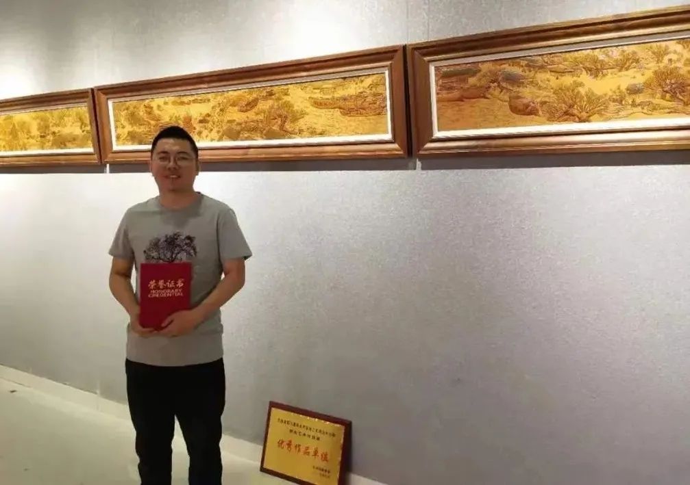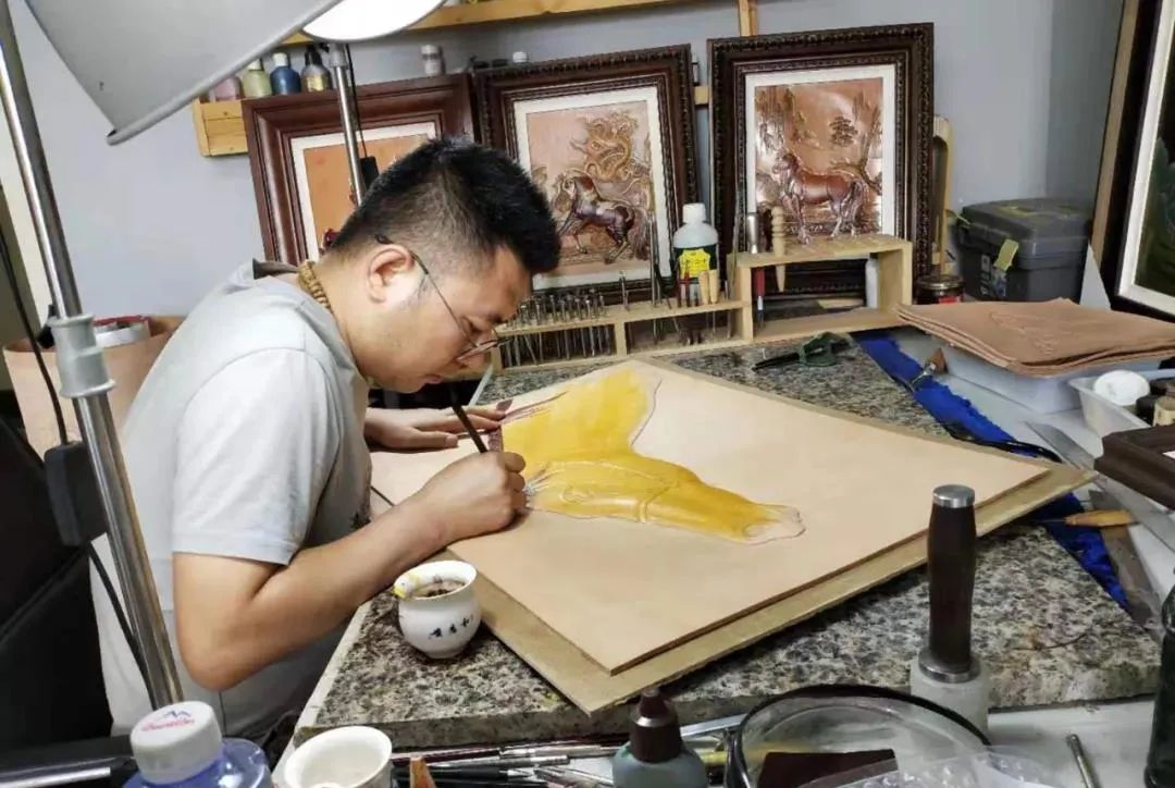 包頭市東河區(qū)皮雕畫(huà)非遺項(xiàng)目傳承人張衛(wèi)祥,2012年畢業(yè)于中央美術(shù)學(xué)院,受老師影響,畢業(yè)后一直致力于把皮雕與古代山水畫(huà)結(jié)合,使皮雕畫(huà)展現(xiàn)出古樸典雅的風(fēng)格,許多皮雕作品屢屢獲獎(jiǎng)。
