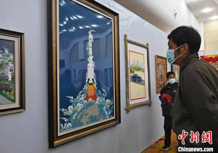 邊巴是作品《一飛沖天》的作者,這位畫(huà)師從1979年從事唐卡繪畫(huà)至今。他說(shuō),該作品以神舟十三號(hào)為主題,描繪了飛船沖出地球奔向星辰大海的瞬間。采用勉唐派唐卡繪畫(huà)語(yǔ)言和傳統(tǒng)礦植物顏料。同時(shí)融合了漢藏審美視角,立足于中國(guó)放眼世界的人類(lèi)命運(yùn)共同體胸懷,嘗試新時(shí)代新唐卡新融合的藝術(shù)表達(dá)。