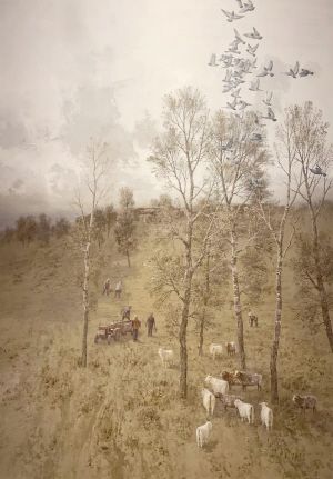 《天山腳下新牧場》呂劍利 版畫 73cm×93cm 全國版畫展展出作品