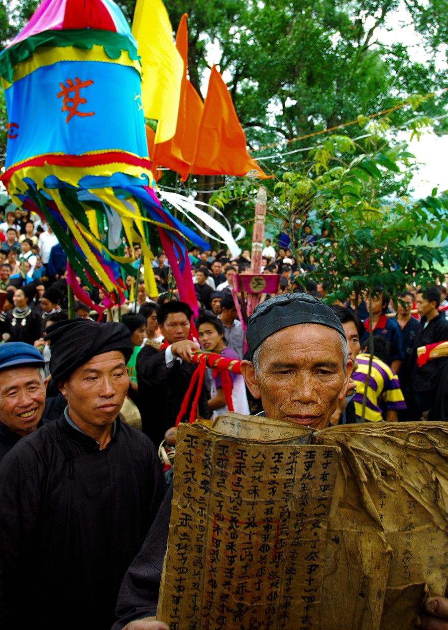 人們傳說只有醉倒了"霞神",它才能永遠留在這方,才能使這里風(fēng)調(diào)雨順。當(dāng)水書先生念了最后的咒詞,祭典才在鼓樂聲和歡呼聲中結(jié)束。最后,各族系將祭肉一并聚攏,聚餐慶祝。天黑之后,人們秘密地將"霞神"收藏起來,至此,"敬霞"活動全部結(jié)束。