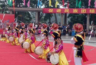 象帽舞是朝鮮族富有代表性的一種舞蹈形式,深受當?shù)爻r族居民喜愛。每逢節(jié)日、慶典等特殊日子,人們就跳起歡快的舞蹈,搖動色彩繽紛的象帽,線條流暢的長長飄帶旋轉(zhuǎn)如風(fēng),在舞者周圍畫出各種光輝耀眼的美妙彩環(huán),獨具特色的舞蹈體現(xiàn)了朝鮮族人民在勞動、生活中的喜悅之情和活潑大方的民族氣質(zhì)。