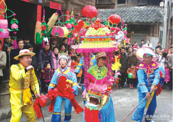 利川燈歌,又名燈調(diào),始于清代初期,已有300多年的歷史,是人們逢年過節(jié)之時以彩龍船為道具,畫地為臺、亦唱亦演的民間藝術(shù)形式。2011年5月,利川燈歌被國務(wù)院公布為第三批國家級非物質(zhì)文化遺產(chǎn)名錄。
