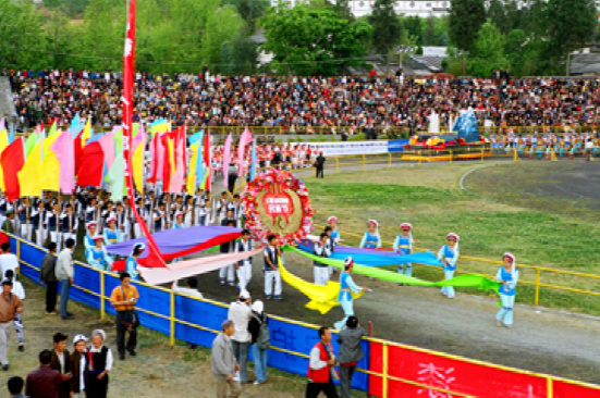 三月街又名“觀音市”,是云南白族盛大的節(jié)日和街期。每年夏歷三月十五至二十日在大理城西的點蒼山腳下舉行。最初它帶有宗教活動色彩,后來逐漸變?yōu)橐粋€盛大的物資交流會。明清時期,四川、西藏、江南各省都有商人到此貿(mào)易。它不僅是個交換場所,還是表演各種舞蹈和賽馬、競技的樂園。中華人民共和國成立后,三月街已發(fā)展成滇西各族人民一年一度繁榮的物資交流和民族體育文藝大會,對加強民族團(tuán)結(jié)、促進(jìn)民族間的經(jīng)濟(jì)文化交流,起了積極的作用。