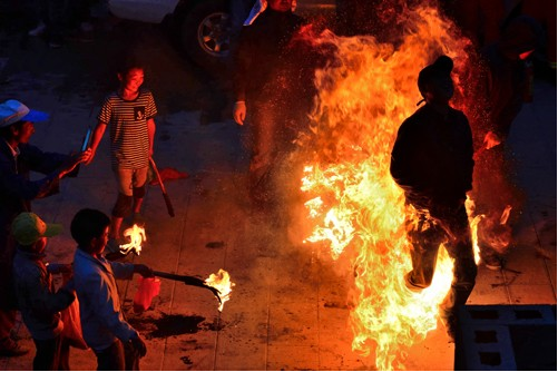 劍川的火把節(jié),還是增進親友情誼的一個紅火節(jié)日。到燃燒著的火把樹下玩,烤著火把節(jié)的火,在火光中歡樂談笑,平時見面只打招呼的人喝酒碰杯,說句貼心的話,情誼一下子就升華了。
