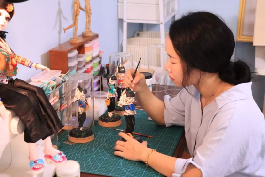 讓人驚艷的,還原度無比高的作品人物服飾,這其中還有冰冰媽媽的一些的建議呢,雕雕琢琢,便有了生動形象的這些精致作品。聊起整個創(chuàng)作過程的冰冰,笑盈盈地說:創(chuàng)作粘土惠女作品,是一件讓我感到滿足和幸福的事情。之后也會持續(xù)創(chuàng)新,精益求精地進(jìn)行創(chuàng)作。