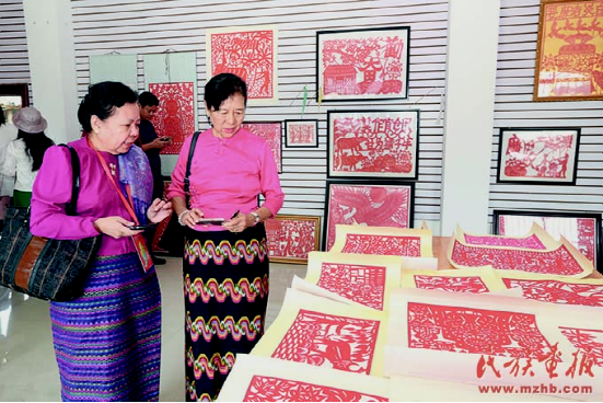 工藝美術(shù)專家在邵梅罕傣族剪紙藝術(shù)館考察。