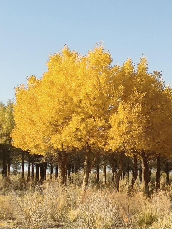 胡楊是多變的,春夏為綠色,深秋為黃色,冬天為紅色。胡楊又是堅強的樹種,有“生而千年不死,死而千年不倒,倒而千年不朽”之說。全國有多處胡楊林區(qū),但最為美麗,最為壯觀,胡楊林最為聚集的地方就是額濟納旗胡楊林了。