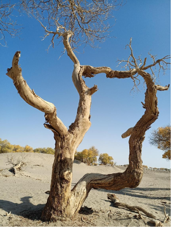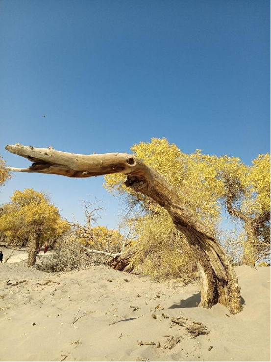 胡楊,又稱胡桐、英雄樹、異葉胡楊、異葉楊、水桐、三葉樹,是生長在沙漠中的樹種,它耐寒、耐旱、耐鹽堿、抗風(fēng)沙,有很強的生命力。