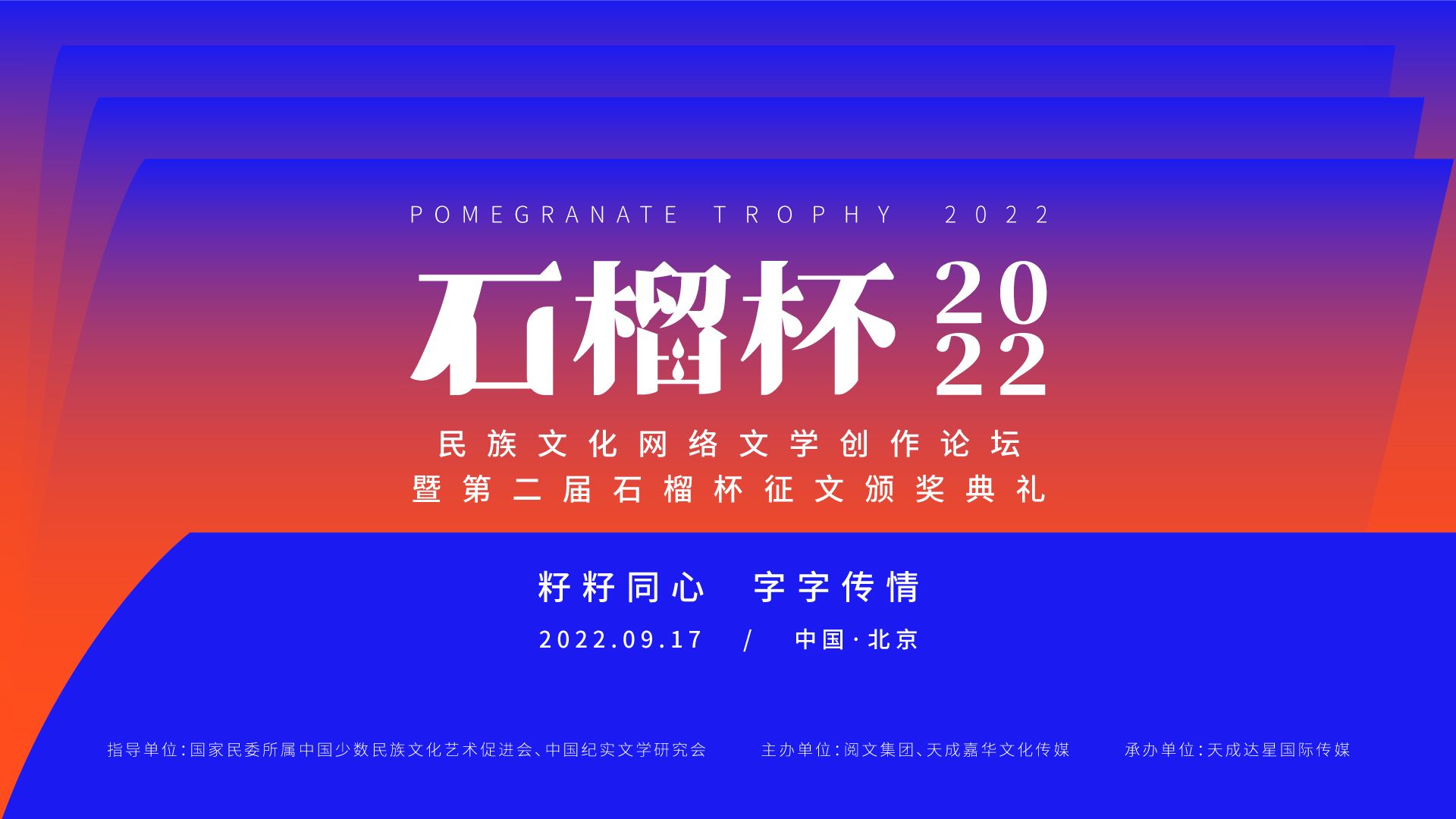 簡介:2022年9月17日,民族文化網(wǎng)絡(luò)文學創(chuàng)作論壇暨第二屆石榴杯征文頒獎活動在民族文化宮舉行。本次活動得到了國家民委所屬中國少數(shù)民族文化藝術(shù)促進會和中國紀實文學研究會的指導與支持,由閱文集團、北京天成嘉華文化傳媒主辦,天成達星國際傳媒承辦。[詳細]