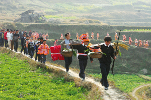 每年秋收后的農(nóng)歷九至十一月間,是湘西苗族忙碌的接親嫁女季節(jié)。這里的苗族婚禮,有著濃郁、古樸的民族特點...