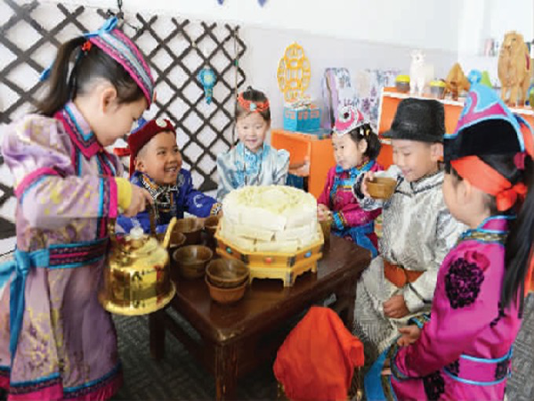 走進(jìn)錫林郭勒盟鑲黃旗民族幼兒園,“賽白努,請(qǐng)坐、喝茶”等文明禮貌用語讓我們聽得無比親切。該幼兒園2009年開始開展“傳承蒙古族文化遺產(chǎn)”的課程。據(jù)了解,課程的內(nèi)容按照日常生活的習(xí)慣來展開故事情節(jié)。舞蹈、繪畫,都從幼兒的角度去設(shè)計(jì),結(jié)合幼兒喜歡的童話故事、卡通圖片,將蒙古族文化滲透其中。課外要求家長帶領(lǐng)孩子走進(jìn)牧區(qū)參加放牧、擠奶、接羔等勞動(dòng),從長輩那里學(xué)習(xí)繼承生產(chǎn)生活方式和技能。蒙古象棋、“吉日格”(鹿連兒)、“沙嘎”(羊拐子)等一些蒙古族傳統(tǒng)游戲不僅是智慧、意志和應(yīng)變能力的較量,更重要的是使民族的文化遺產(chǎn)得以傳承。