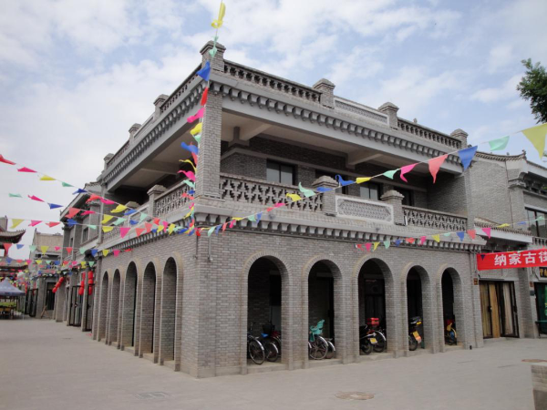 中華回鄉(xiāng)第一街位于永寧縣納家戶北側(cè)。該項(xiàng)目以納家戶清真大寺為中心擴(kuò)展門前廣場,以廣場為中心向北,直北長380米,東西寬107米,占地面積93.78畝,建筑面積1.6萬平方米,建成商鋪177套。所有建筑遵循當(dāng)?shù)鼗刈宓慕ㄖL(fēng)格,采用青磚砌筑,尤其在細(xì)節(jié)處理上用符號、色調(diào)與裝飾來表現(xiàn)回族建筑的精髓。雕梁畫棟,飛檐四出,并且在墻壁、牌坊、檐口、山墻等處運(yùn)用了大量磚雕、伊斯蘭花飾等將伊斯蘭文化藝術(shù)與中國傳統(tǒng)建筑風(fēng)格有機(jī)的結(jié)合在一起,為景區(qū)增加了濃郁的歷史文化氛圍。該街道由北向南依次分為土特產(chǎn)區(qū)、民俗文化區(qū)、旅游紀(jì)念區(qū)、餐飲區(qū)、配套商業(yè)區(qū)五大功能區(qū)。